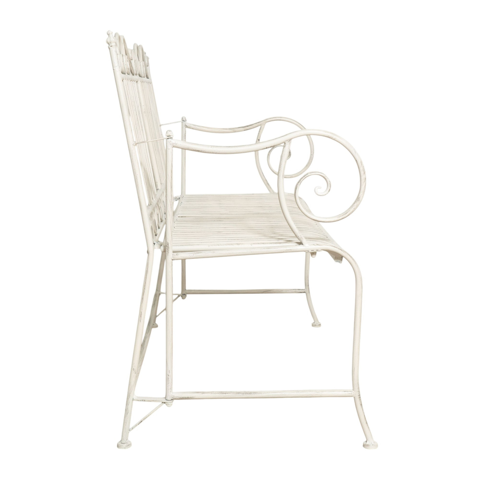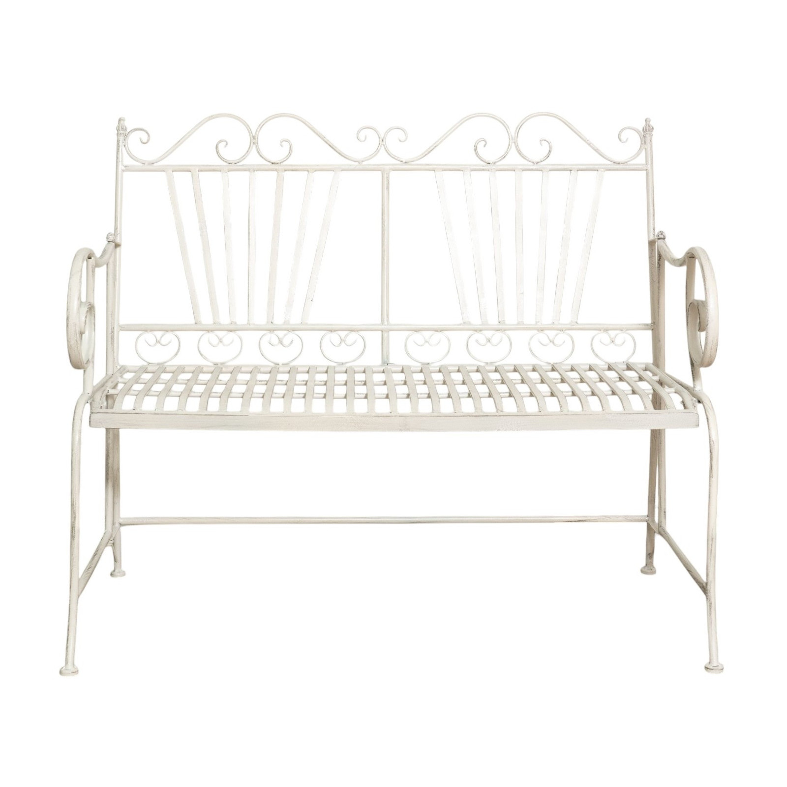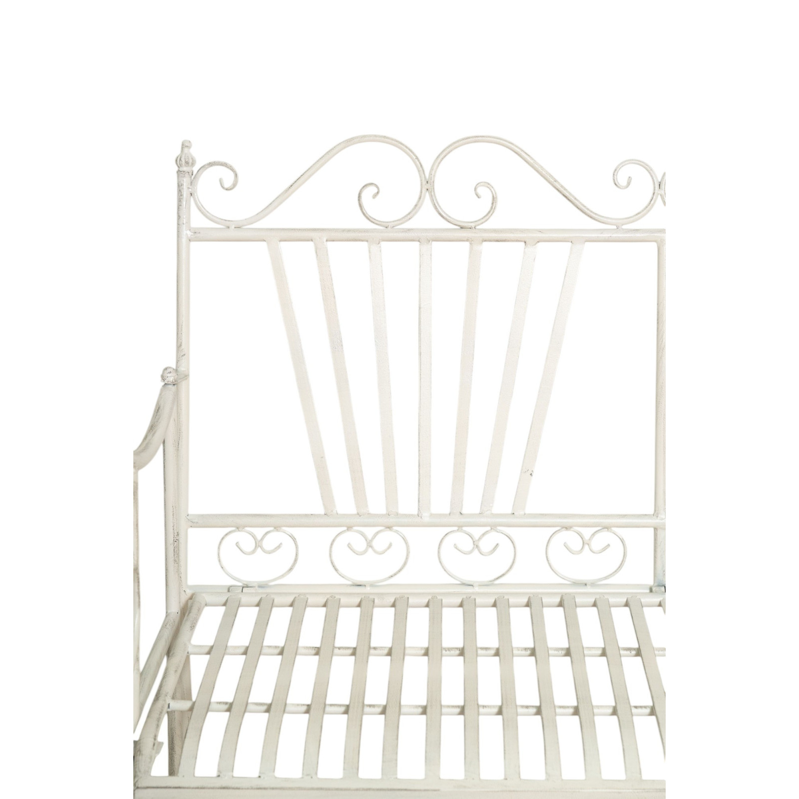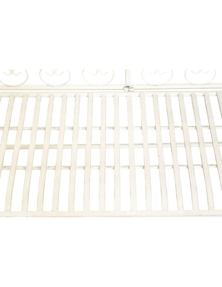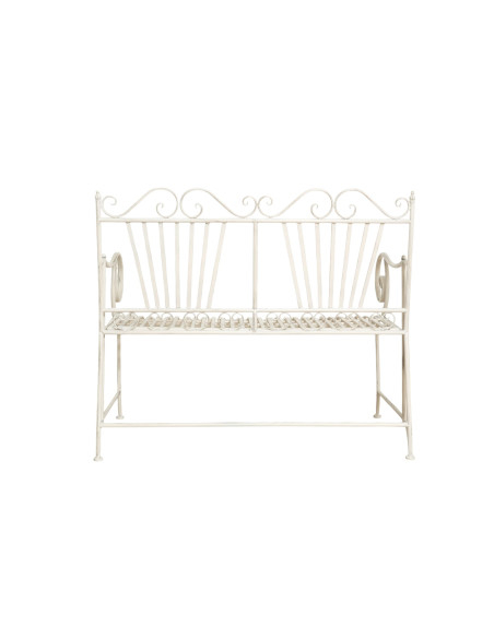 Bancos sofás em ferro com dimensões largura 113 cm, profundidade 58 cm, altura 94 cm acabamento branco envelhecido. Com o seu estilo provençal, decora com elegância funcional qualquer ambiente, tanto interior como exterior.