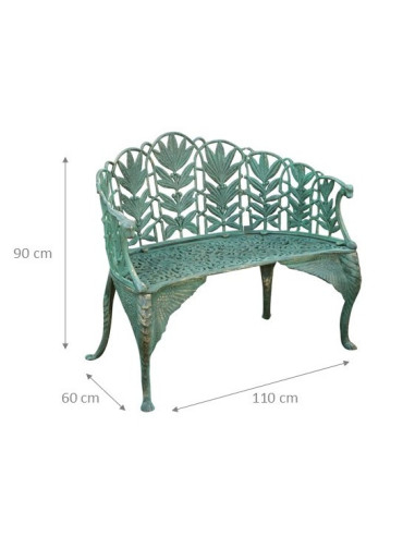 Banco Liberty em ferro fundido com acabamento verde antigo L110xDP60xA90 cm