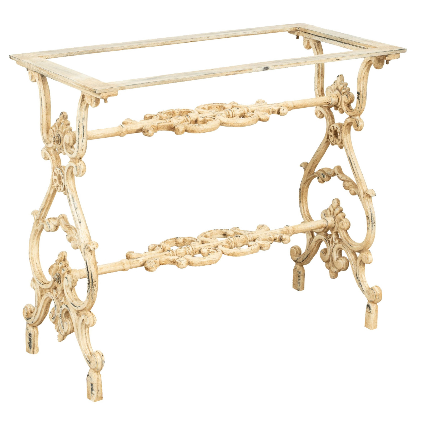 Base muito estável, robusta e pesada para tamanho de mesa de ferro fundido 86 cm de largura, profundidade 43 cm, altura 72 cm completamente feito à mão, com um acabamento preciso completamente feito à mão, obtendo um verdadeiro efeito antigo.