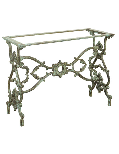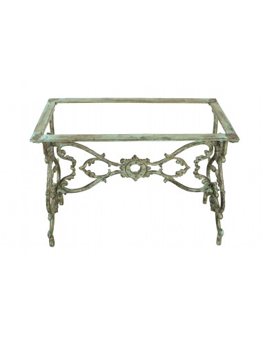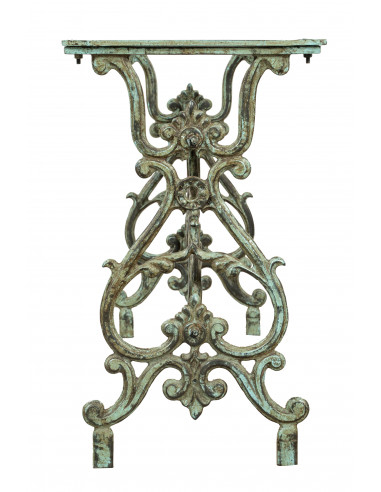 Base muito estável, robusta e pesada para o tamanho da mesa de ferro fundido 100 cm de largura, profundidade 43 cm, altura 71 cm completamente feito à mão, com um acabamento preciso completamente feito à mão, obtendo um verdadeiro efeito antigo.