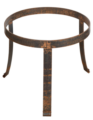 Base para vasos em ferro maciço forjado à mão, sem tratamento, com acabamento em ferrugem natural. Estrutura muito robusta e versátil, utilizável tanto no interior como no exterior. Medidas: largura 55 cm, profundidade 55 cm, altura 46 cm.