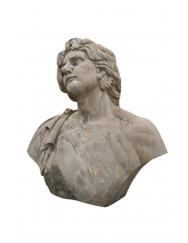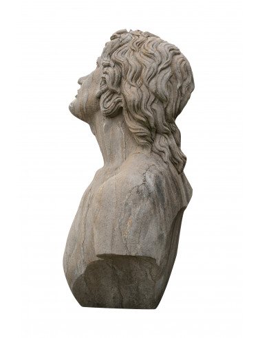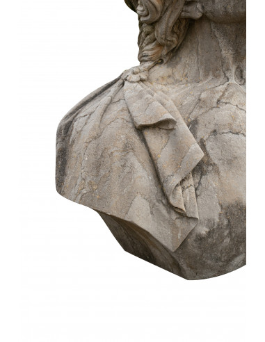 | Busto masculino em pedra L78xDP35xA80 cm feito inteiramente à mão num único bloco de pedra. As tonalidades e grãos característicos do material fazem dele uma peça única. Todas as medidas referem-se ao tamanho máximo do item |