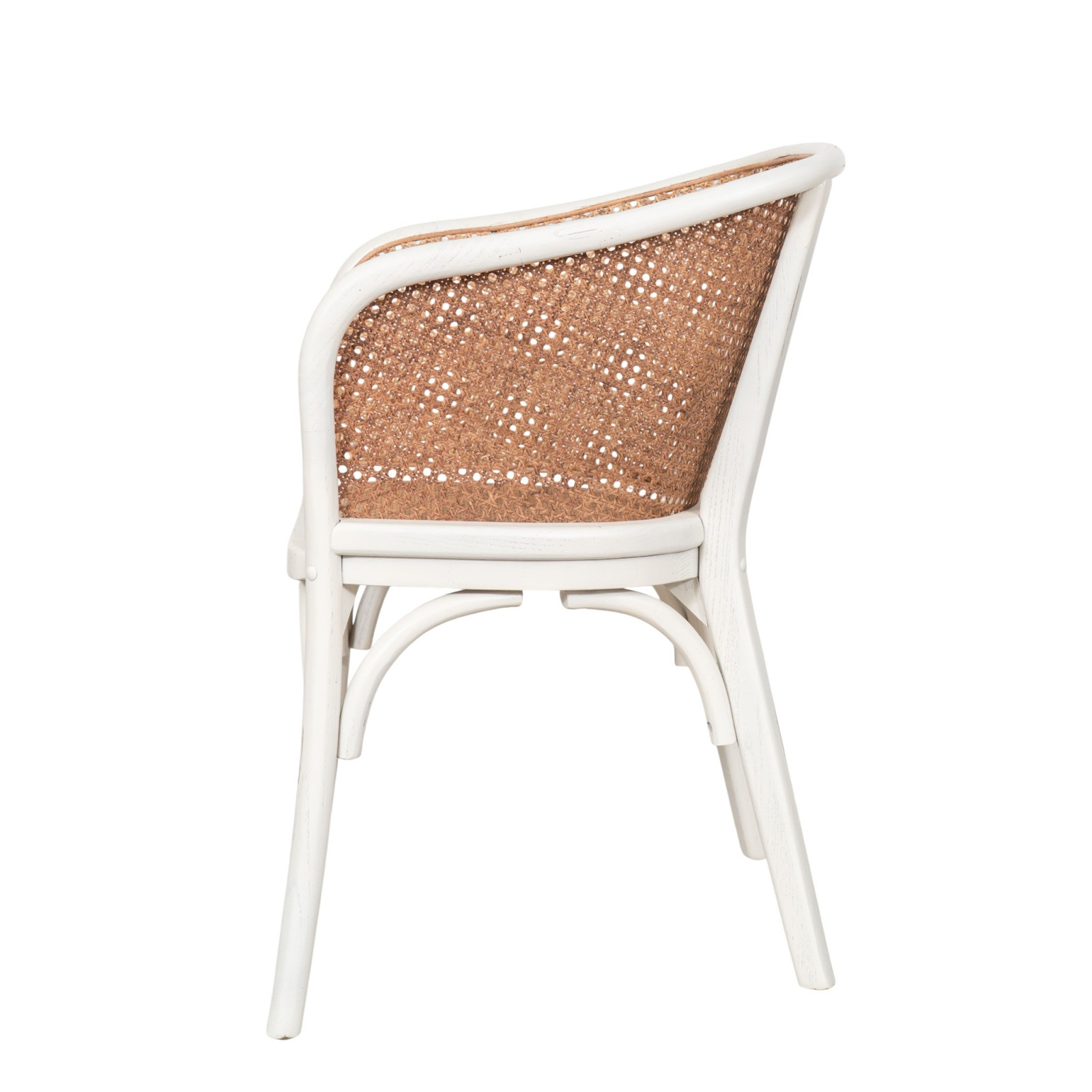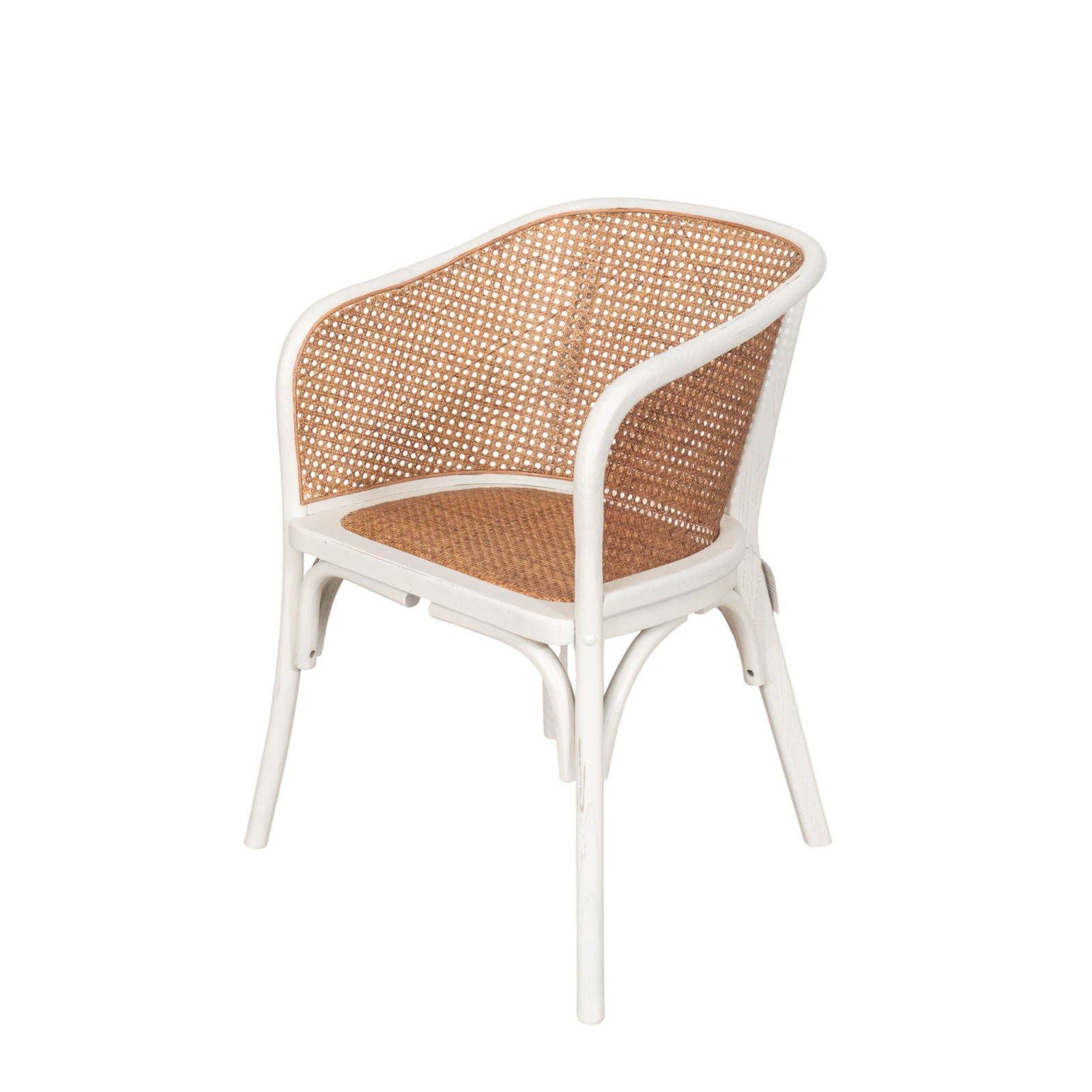 Cadeira em madeira maciça e assento em rattan com acabamento branco envelhecido