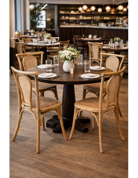 Cadeira em madeira maciça e encosto em palha de Viena com acabamento em nogueira clara