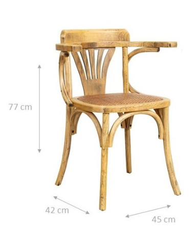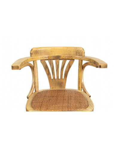 Cadeira Thonet com braços em freixo maciço com acabamento em carvalho e assento em rattan