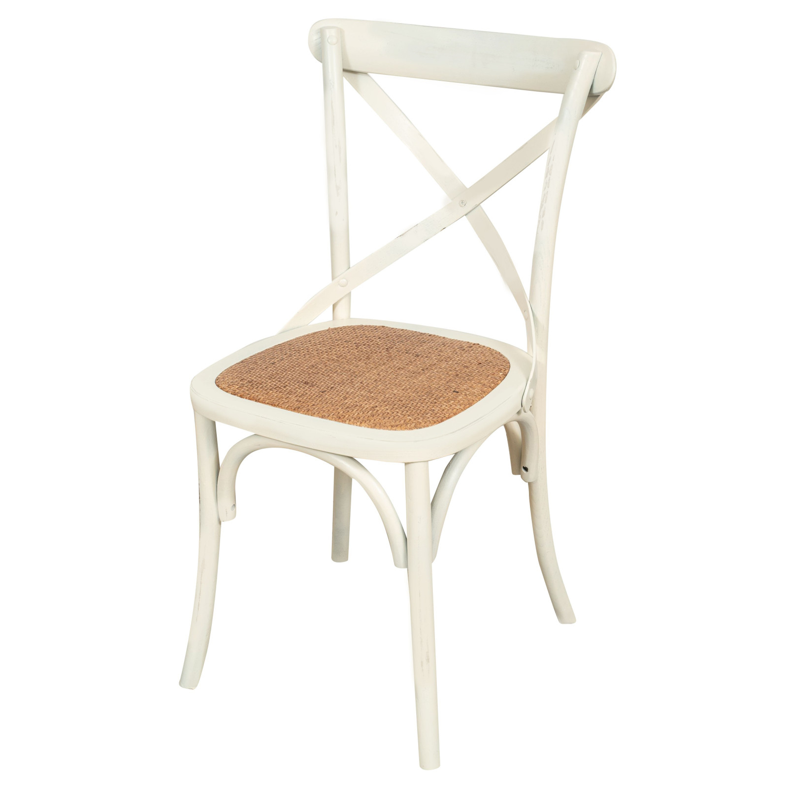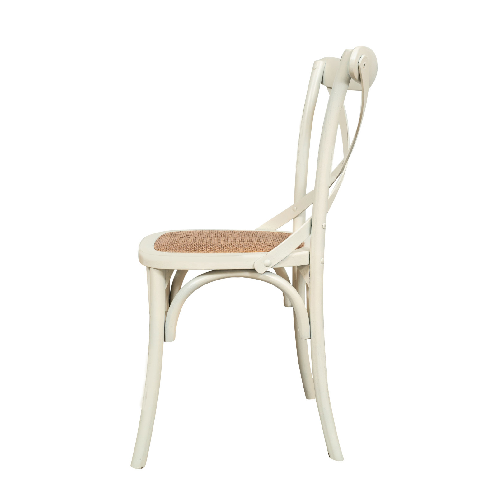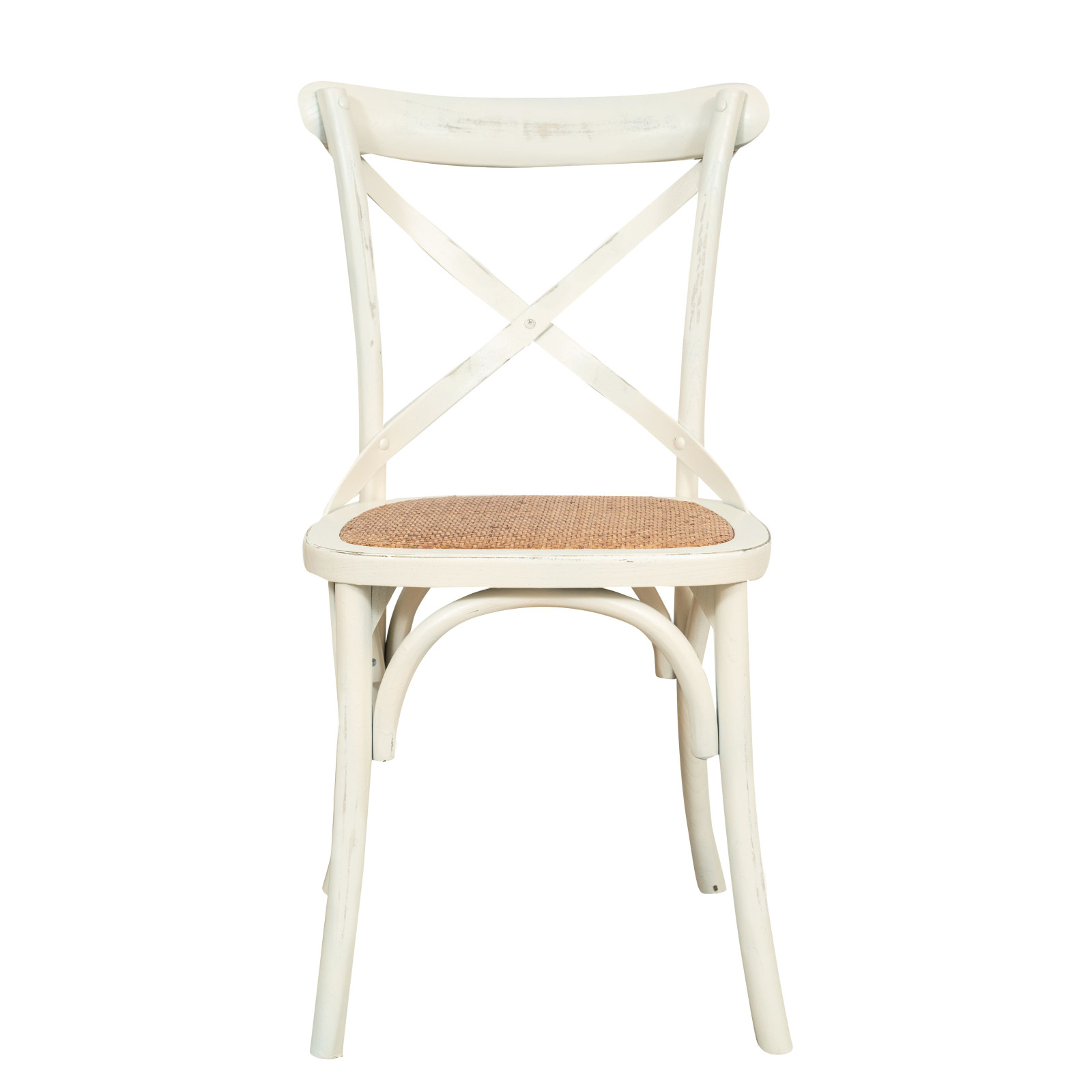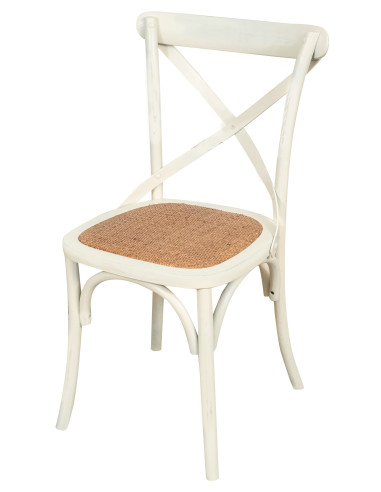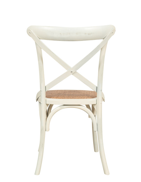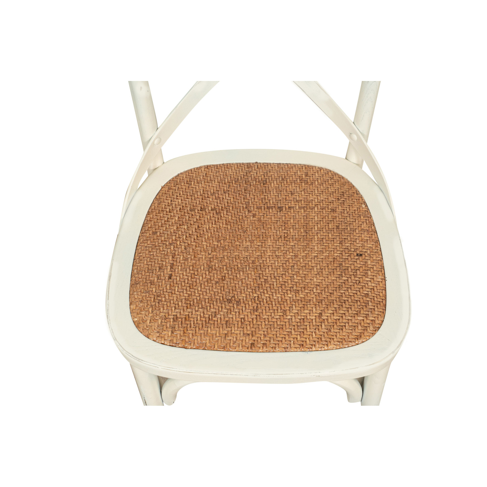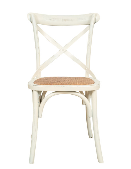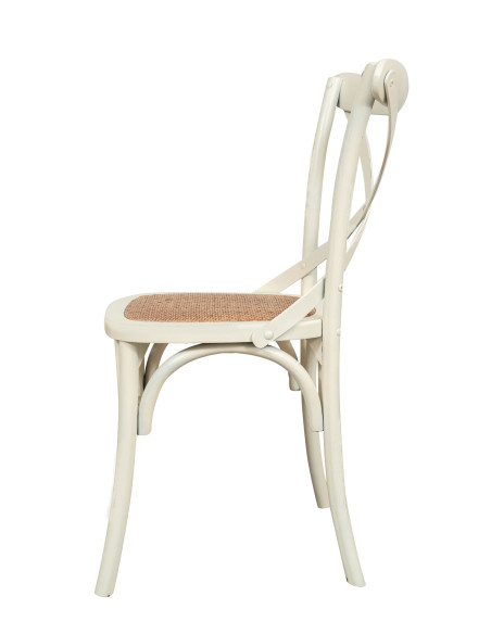 Cadeira Thonet Cross em madeira maciça e assento em rattan com acabamento branco