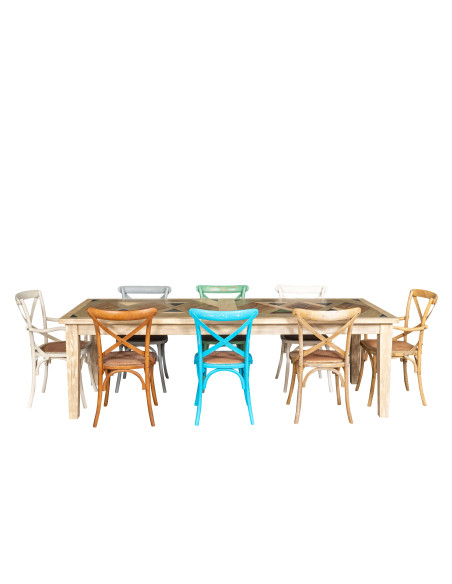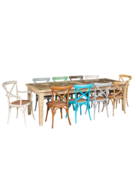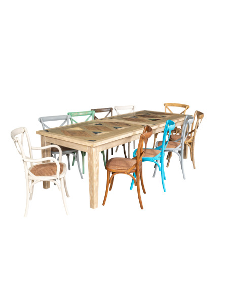 Comprimento da mesa retangular 200 cm, profundidade 90 cm, altura 80 cm em madeira maciça de telha extensível até 255 ou 310 cm graças às duas extensões práticas de 55 cm cada. Ideal para completar com um toque de Country charme cada ambiente, é garantido em solidez e qualidade pelo inconfundível e escrupuloso Feito à mão em Itália.A tabela, no estilo do...