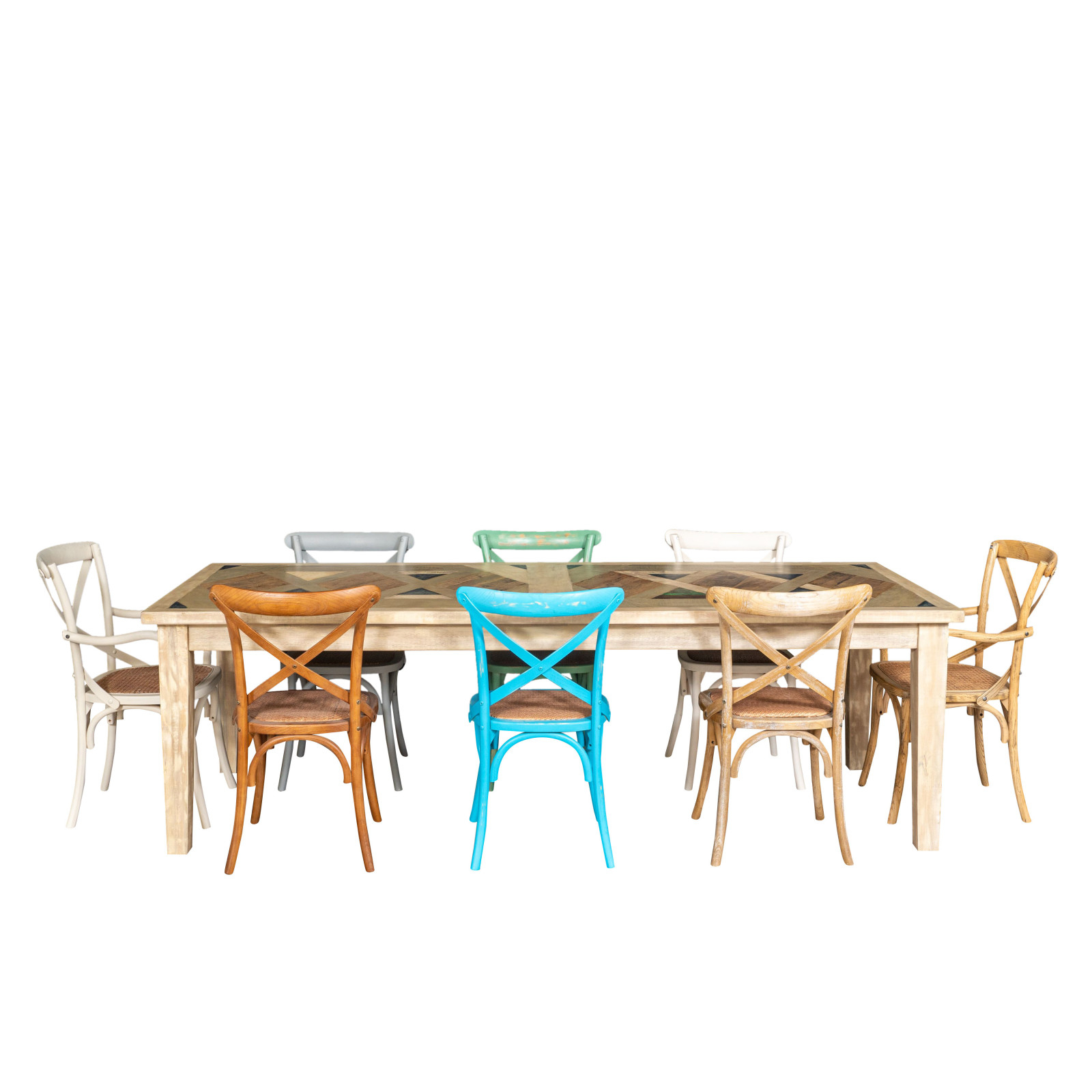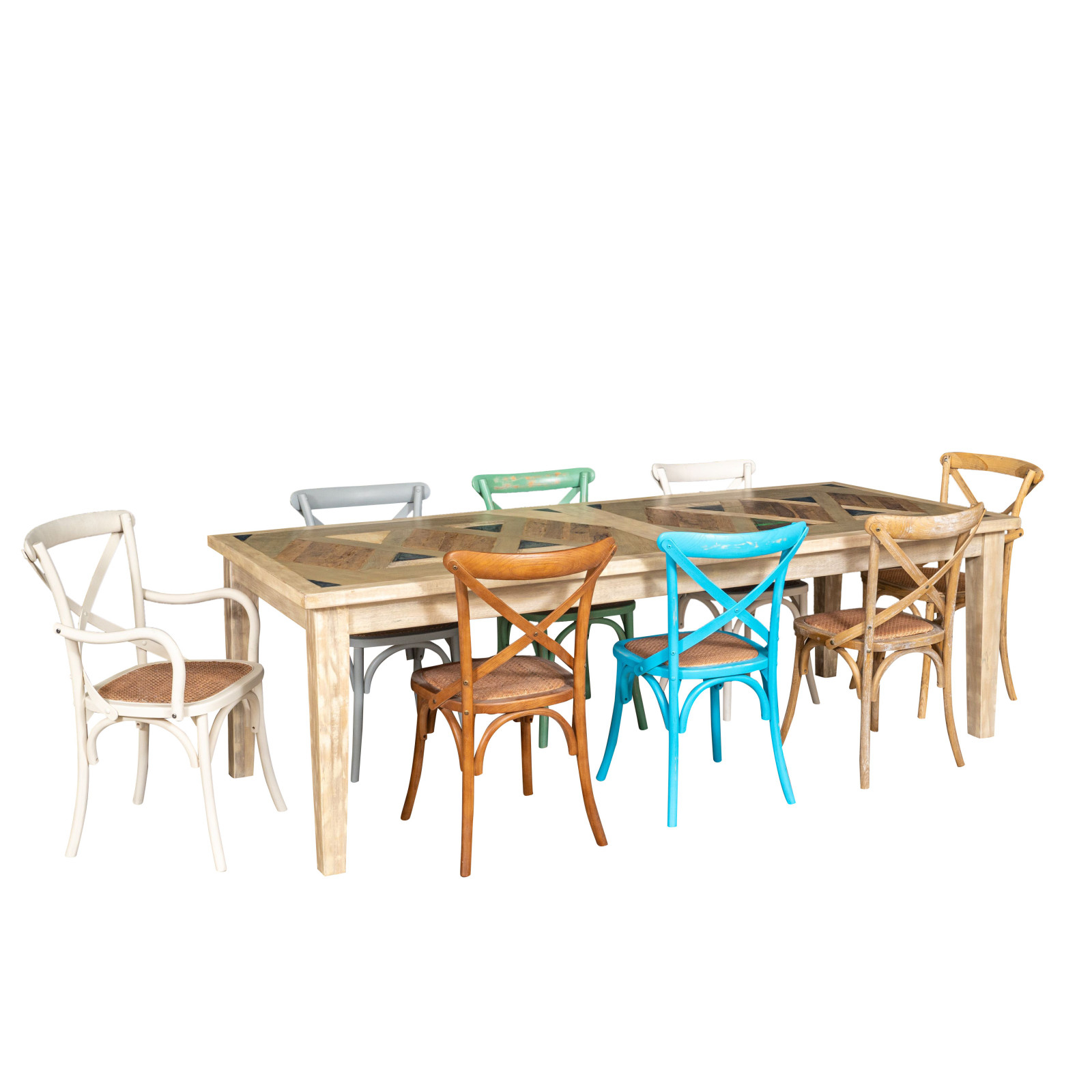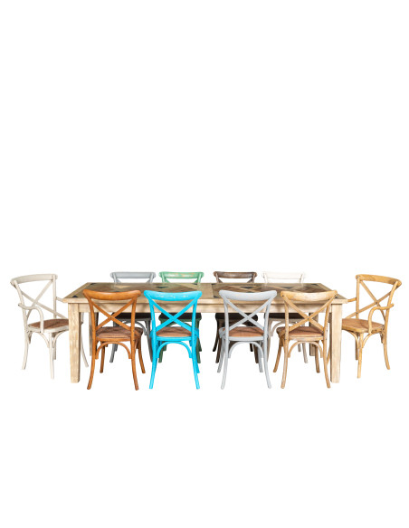 Mesa Country extensível em madeira maciça de cal, estrutura branca...