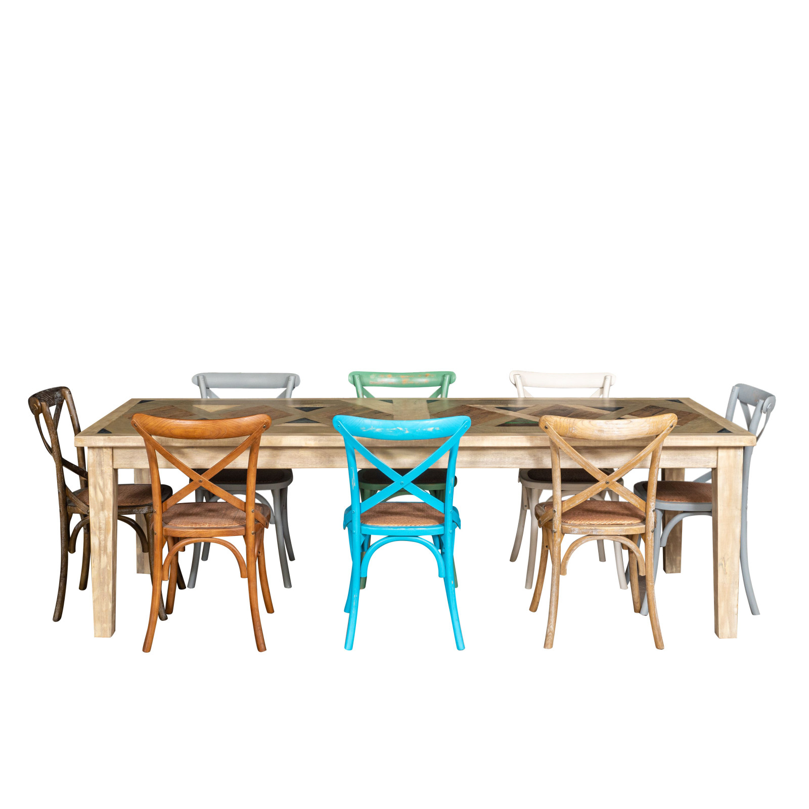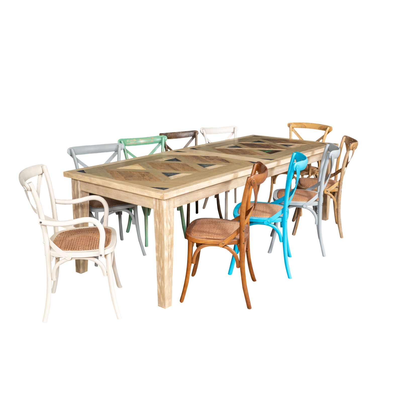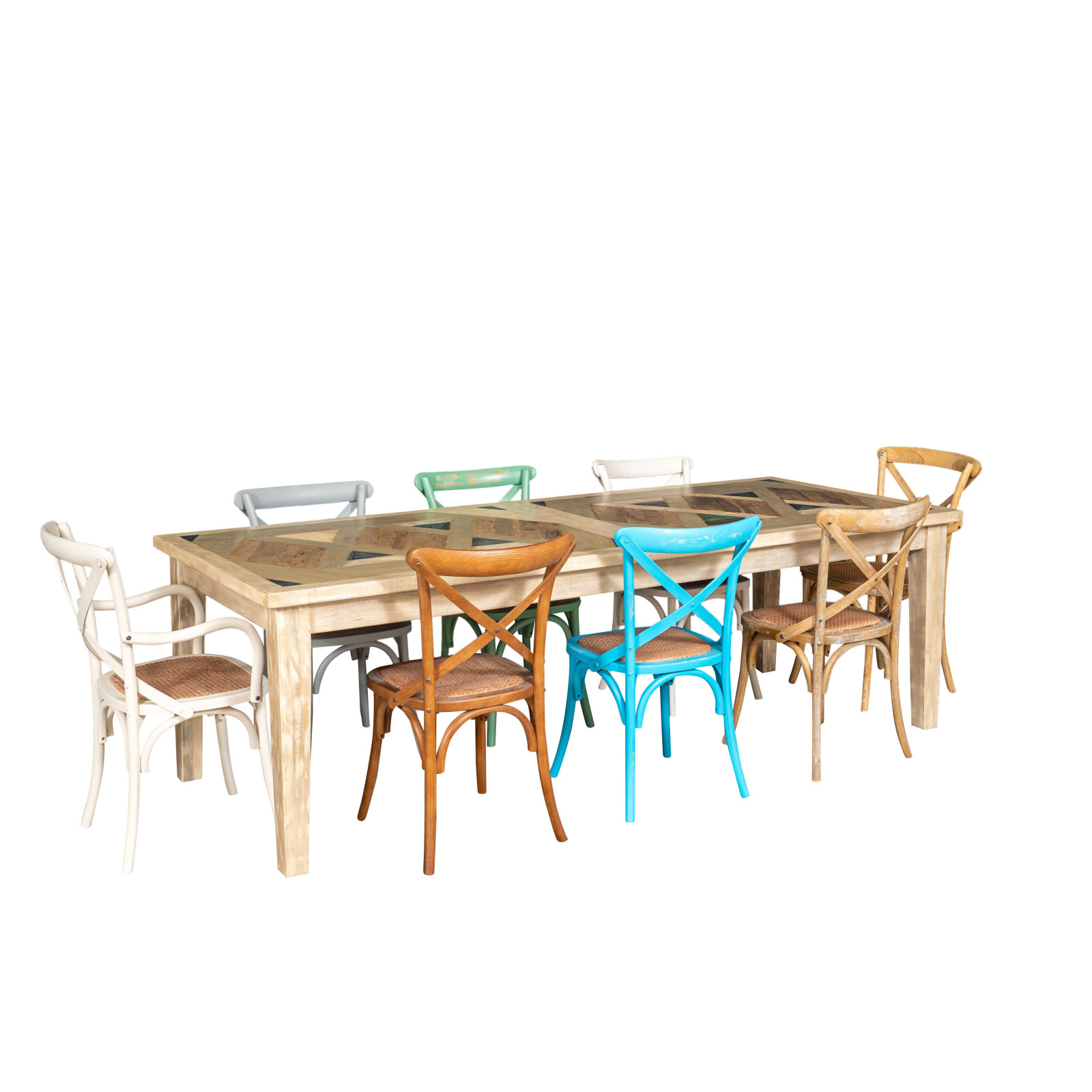 Mesa Country extensível em madeira maciça de cal, estrutura branca...