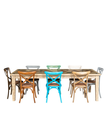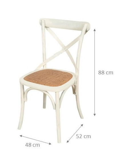 Largura da cadeira 48 cm, profundidade 52 cm, altura 88 cm em estilo Thonet em freixo maciço com encosto cruzado e assento em fibra de vime tecido. Graças ao seu design bistrô é ideal para decorar qualquer ambiente ou sala em estilo vintage, sem abrir mão do conforto.