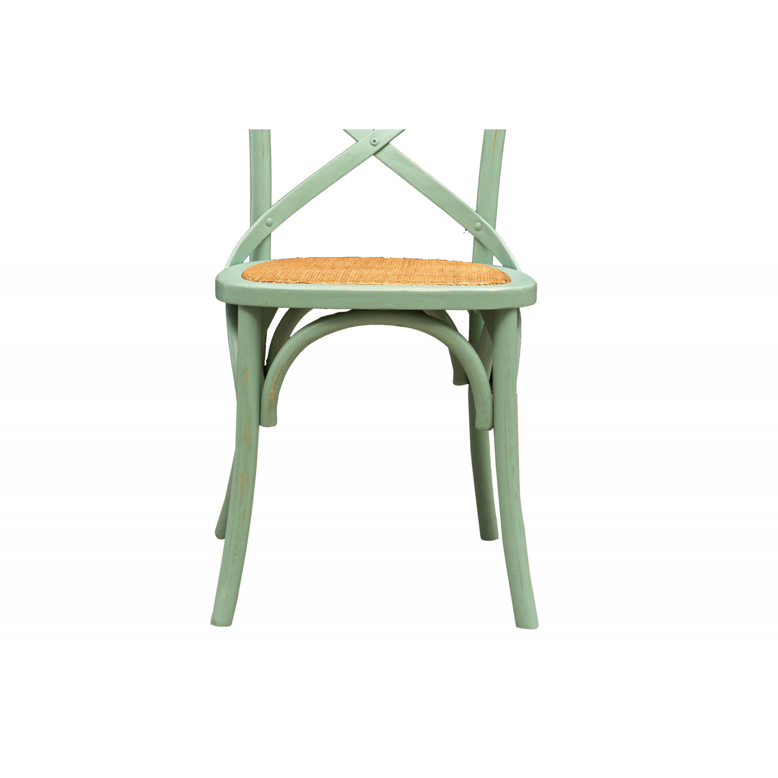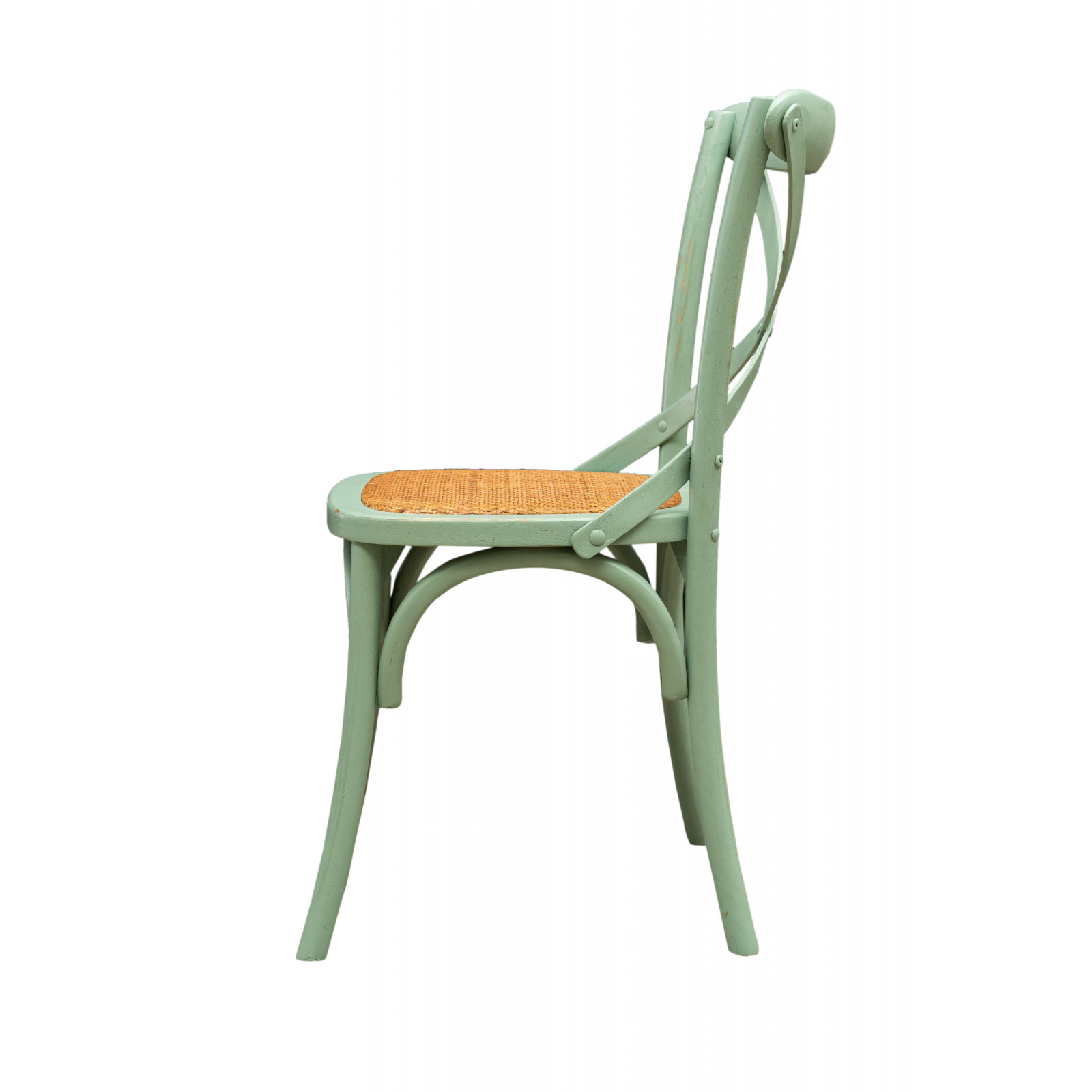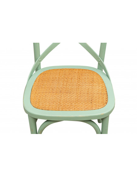 Cadeira Thonet Cross em madeira maciça e assento em rattan com acabamento verde envelhecido