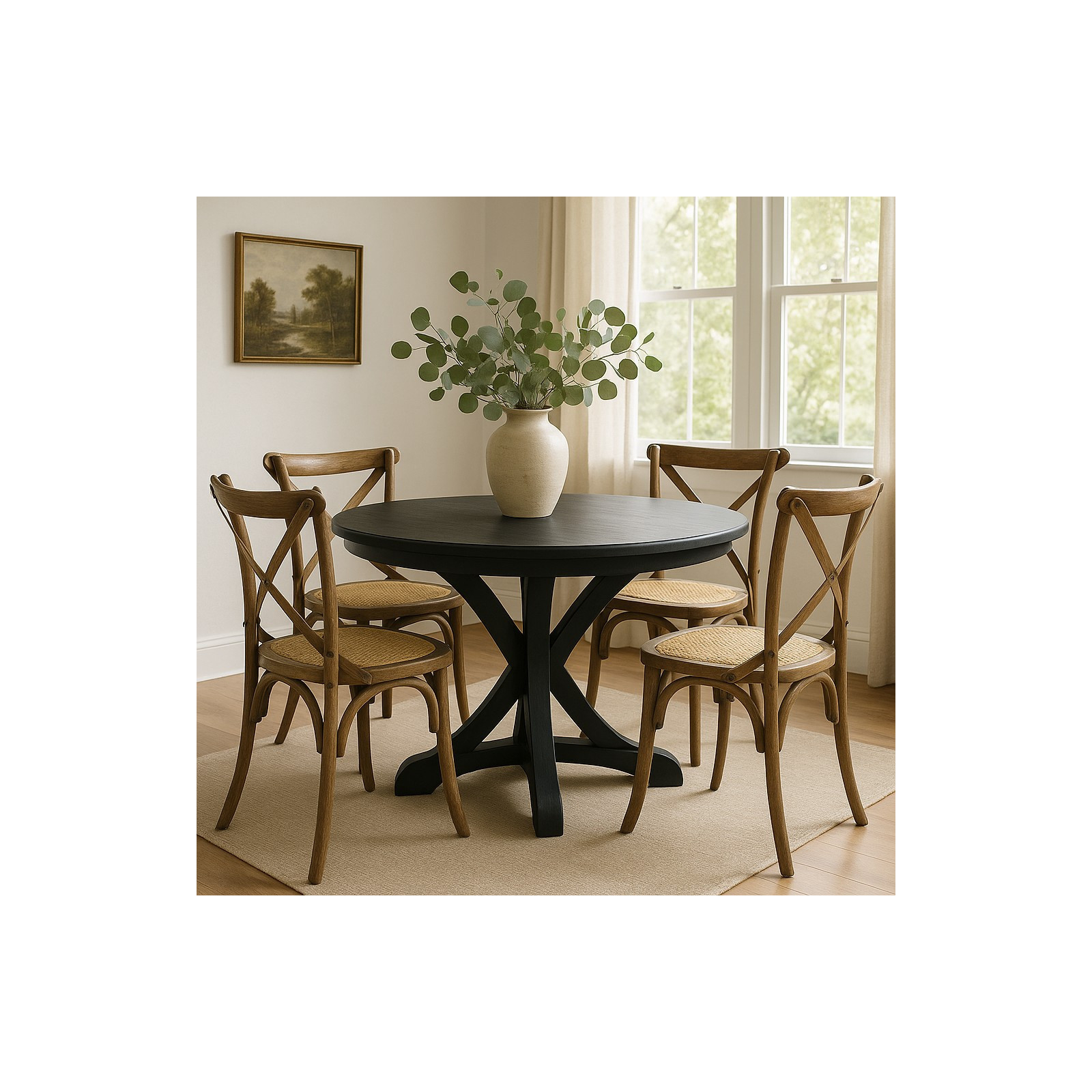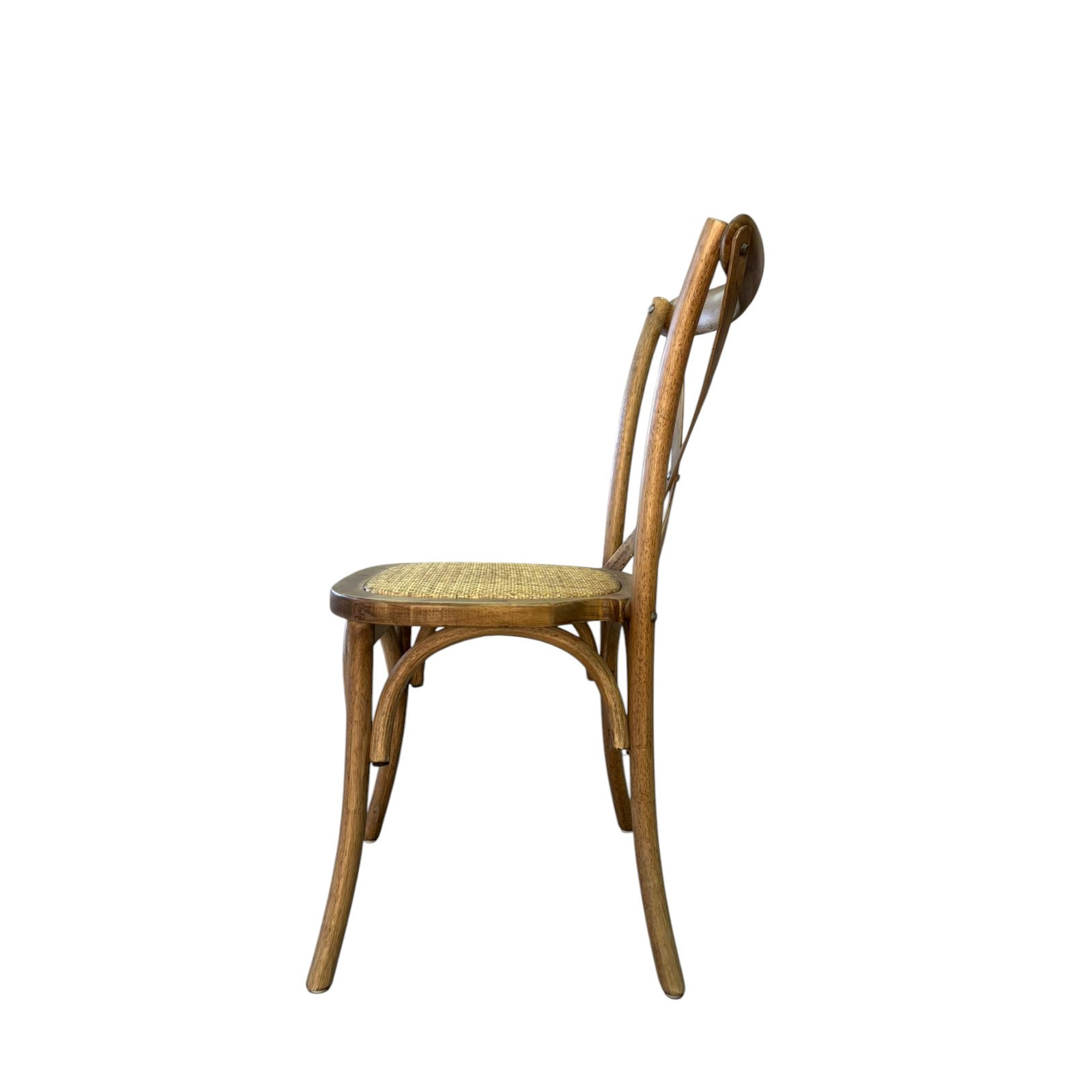 Cadeira Thonet Cross em madeira maciça e assento em rotim com acabamento castanho antigo empilhável