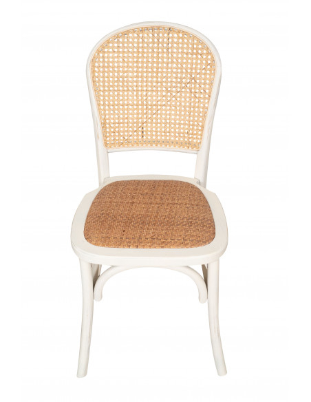 Cadeira Thonet em freixo maciço e assento de rattan com acabamento branco antigo