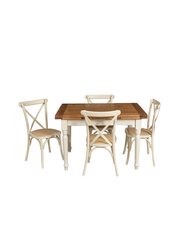 Mesa Country extensível em madeira maciça de cal, estrutura branca...