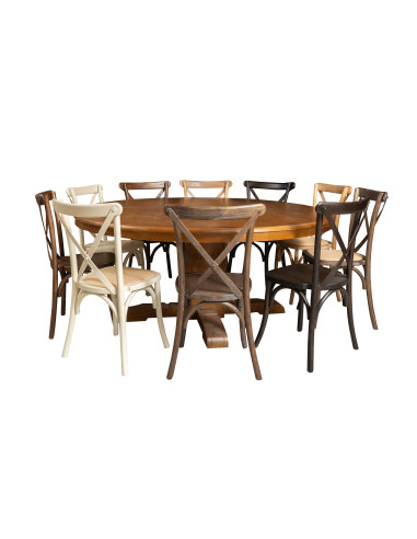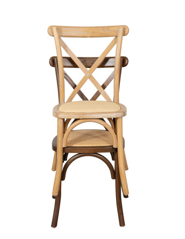 Cadeira com as dimensões de largura 42 cm, profundidade 44 cm, altura 88 cm em estilo Thonet feita de freixo maciço com encosto cruzado. Graças ao seu design de bistrô, é ideal para mobilar qualquer sala ou local em estilo vintage, sem sacrificar o conforto. A altura do chão ao assento é de 46 cm.