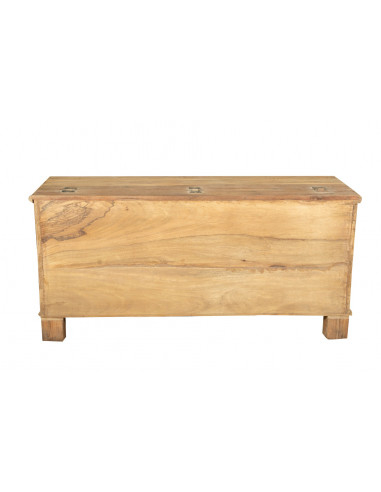Caixa de madeira de teca antigo original esculpida com acabamento decapado
