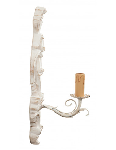 Candeeiro de parede surrado em madeira e ferro, acabamento branco antigo, fabricado em Itália