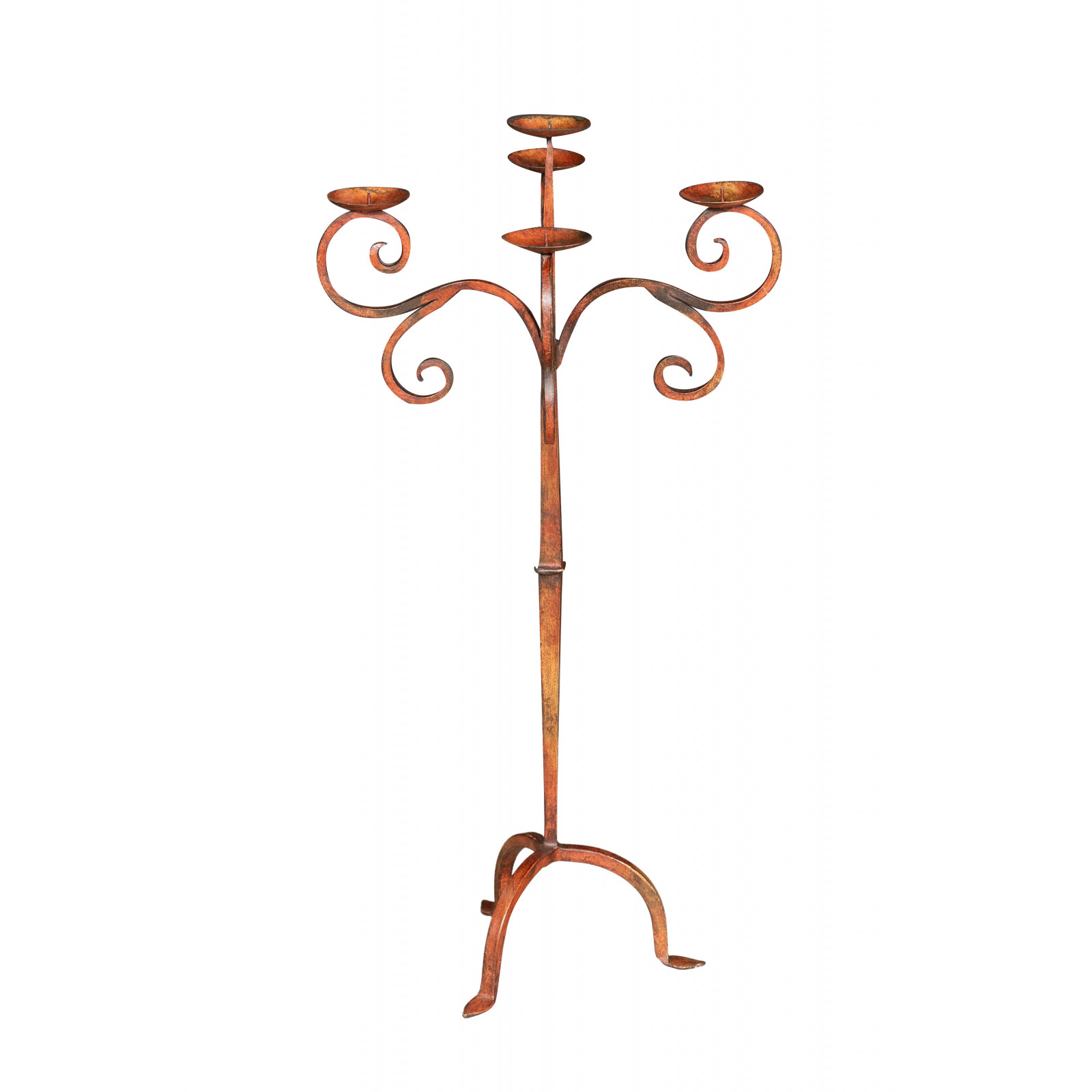 Castiçal de pé em ferro forjado feito à mão com acabamento vermelho antigo, C49XPR49XA94 cm