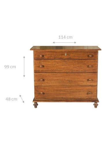 Cômoda country em madeira maciça de limão, acabamento em nogueira L114xDP49xA99 cm. Feito na Itália