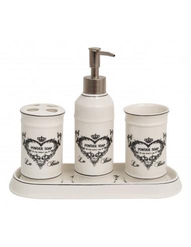 Conjunto de banheiro "Powder Soap" 4 peças decoradas porcelana branca L25xPR10xH21 cm