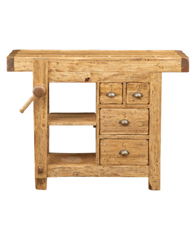 Bancada de trabalho L119xPR63xH90 cm inteiramente feito à mão em madeira de cal sólida. Graças ao ofício especializado e escrupuloso Feito na Itália, à mordida de trabalho e ao cuidado dos menores detalhes, o contador é uma réplica fiel dos antigos contadores tradicionais dos carpinteiros. Equipado com quatro gavetas, a mesa é uma peça versátil e exclusiva de mobiliário capaz de dar um toque de originalidade a qualquer ambiente.