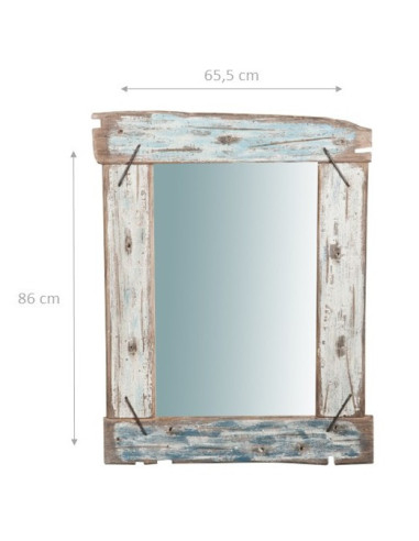 Espelho de parede em madeira maciça com efeito antigo pintado à mão. Medidas L63xPR4xH88 cm. O trabalho artesanal e o acabamento com vernizes naturais tornam cada peça única.