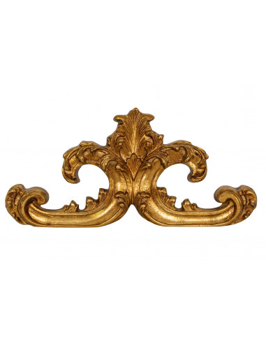 Fregio sopraporta di dimensione comprimento 78 cm, profundidade 8 cm, altura 37 cm feito de madeira terminar velha folha de ouro. Cuidadosamente trabalhou e terminou por velhos artesãos florentinos. Facilmente aplicável para enriquecer e decorar paredes, portas, espelhos, pinturas.. Já combinado com ganchos para fixação à parede. Artigo inteiramente elaborado em Itália.