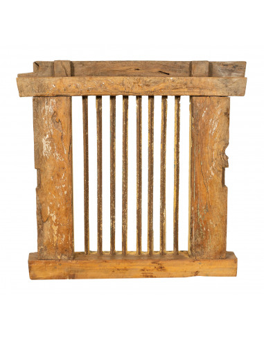 | Janela antiga em ferro e madeira maciça de teca medindo 72 cm de comprimento, 8 cm de profundidade e 71 cm de altura. Esta janela resulta da demolição e recuperação de edifícios antigos e importantes. Finamente restaurada, cada janela é uma peça antiga verdadeiramente única. Também pode ser usado como grelha e grelha. |