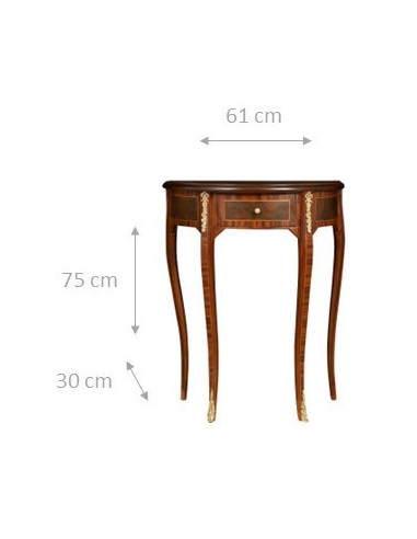 | Mesa de centro meia redonda adequada para diversos contextos de mobiliário com dimensões de largura 61 cm, profundidade 30 cm, altura 75 cm, permitindo combinar com os mais diversos estilos. A estrutura muito sólida e a atenção a todos os detalhes fazem desta mesa uma peça de mobiliário bonita e confiável. Graças à sua compacidade e versatilidade é o acessório de decoração ideal para qualquer ambiente. Por se tratarem de peças totalmente artesanais, todos os acabamentos são originais. |