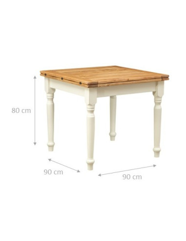 Comprimento da mesa quadrada extensível 90 cm, profundidade 90 cm, altura 80 cm em madeira de cal sólida. Graças à abertura de livro confortável, transforma-se em um amplo piso de 180 cm. Completo com estilo de país todos os ambientes, garantindo solidez e qualidade típica de artesanato inteiramente Feito na Itália.