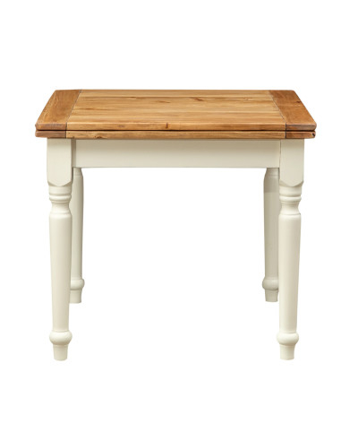 Mesa Country extensível em madeira maciça de cal, estrutura branca antiga, tampo natural L90xDP90xA80 cm. Feito na Itália