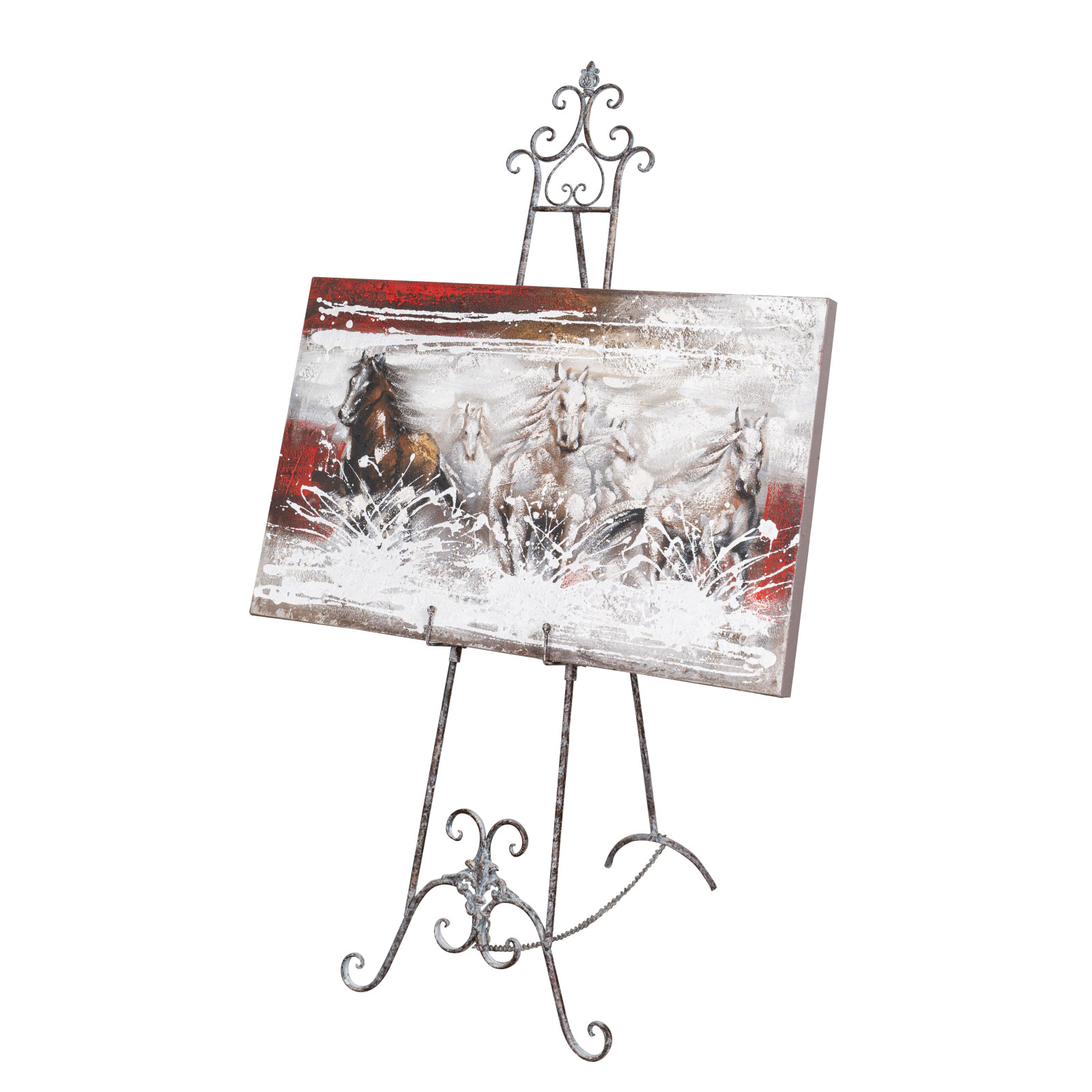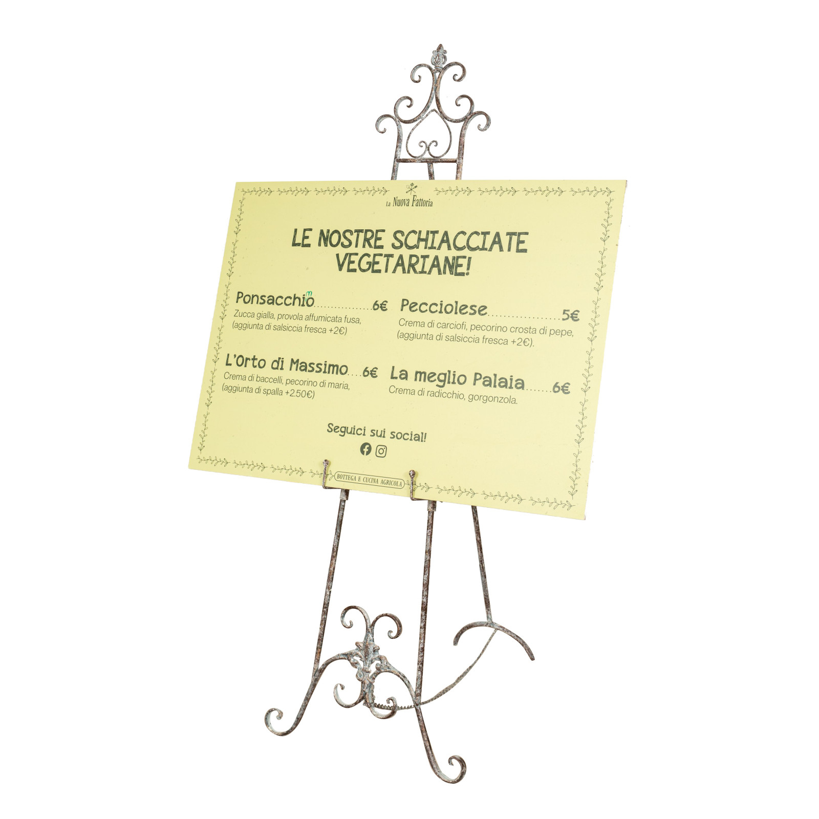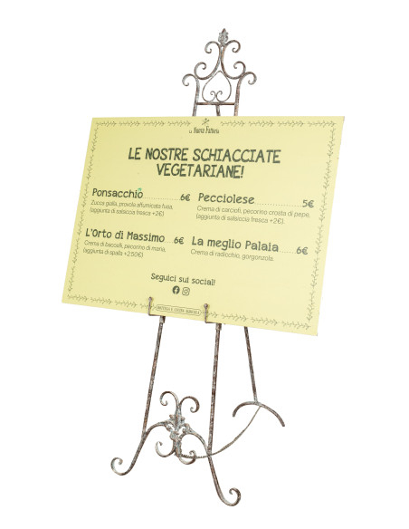 Cavalete tripé elegante, prático e estável para pinturas L53xDP96xH150 cm em ferro forjado. Com atenção aos mínimos detalhes, graças à sua versatilidade é também ideal como porta-menus ou para exposições, montras, galerias.