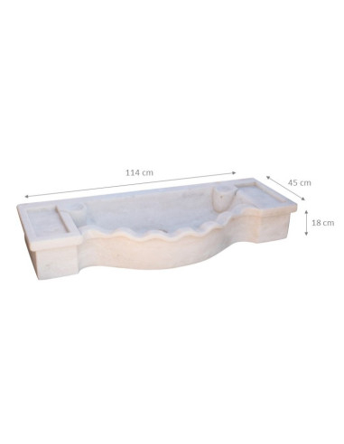 Banheira de mármore totalmente feita à mão L114xPR45xH18 cm, já equipado com furo de drenagem. Feito a partir do processamento de um único bloco de mármore, as nuances características e veias do material torná-lo uma peça única. Ideal como uma pia interior ou pia exterior, mas também como uma banheira de fonte.