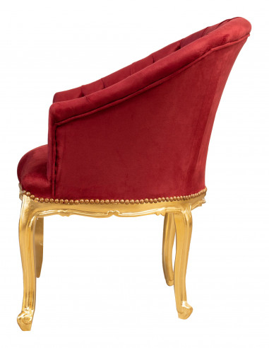 | Poltrona estilo francês Luís XVI, feito de madeira maciça de faia, mão esculpida de tamanho 72 cm, profundidade 64 cm, altura 88 cm. Acabamento natural tratado, ligeiramente patinado branco Shabby. Assento e costas estofados à mão. |