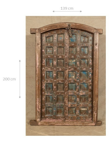Porta antiga em teca maciça com dimensões de 139 cm de comprimento, 27 cm de profundidade e 200 cm de altura. Esta porta provém da demolição e do restauro de edifícios antigos importantes. Finamente restaurada e tratada para utilização no exterior, cada porta é uma peça de antiguidade verdadeira e única. Todas as medidas referem-se às dimensões totais máximas do artigo.