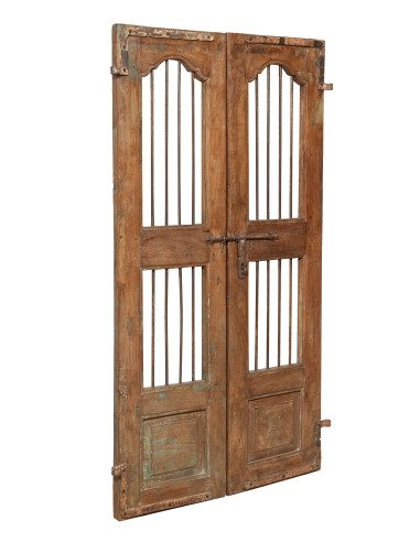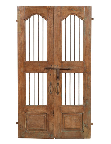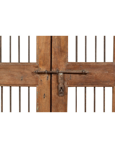 Porta de correr medieval antiga, interior ou exterior, em madeira maciça e ferro