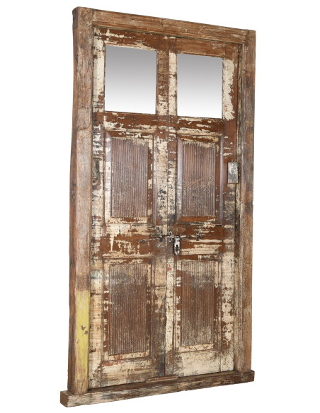 Portão/porta antiga em madeira maciça de teca com dimensões de comprimento 122 cm, profundidade 10 cm, altura 223 cm. Este portão provém de demolições e recuperações de edifícios antigos e importantes. Finamente restaurado e tratado também para uso externo, cada porta é uma peça de antiguidade verdadeira e única. Todas as medidas referem-se ao espaço máximo ocupado pelo artigo.
