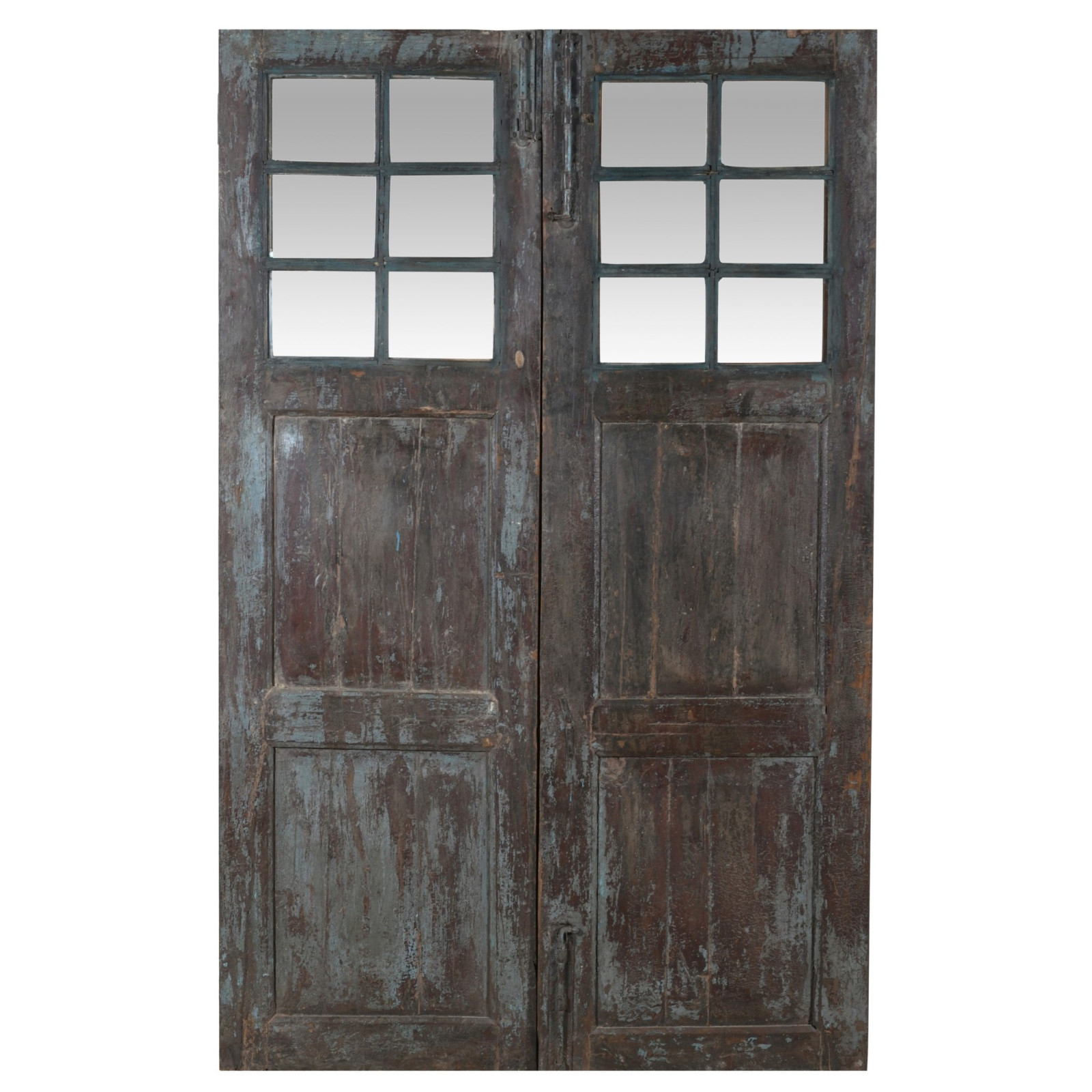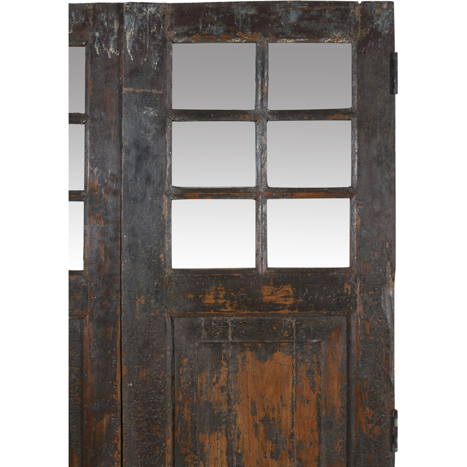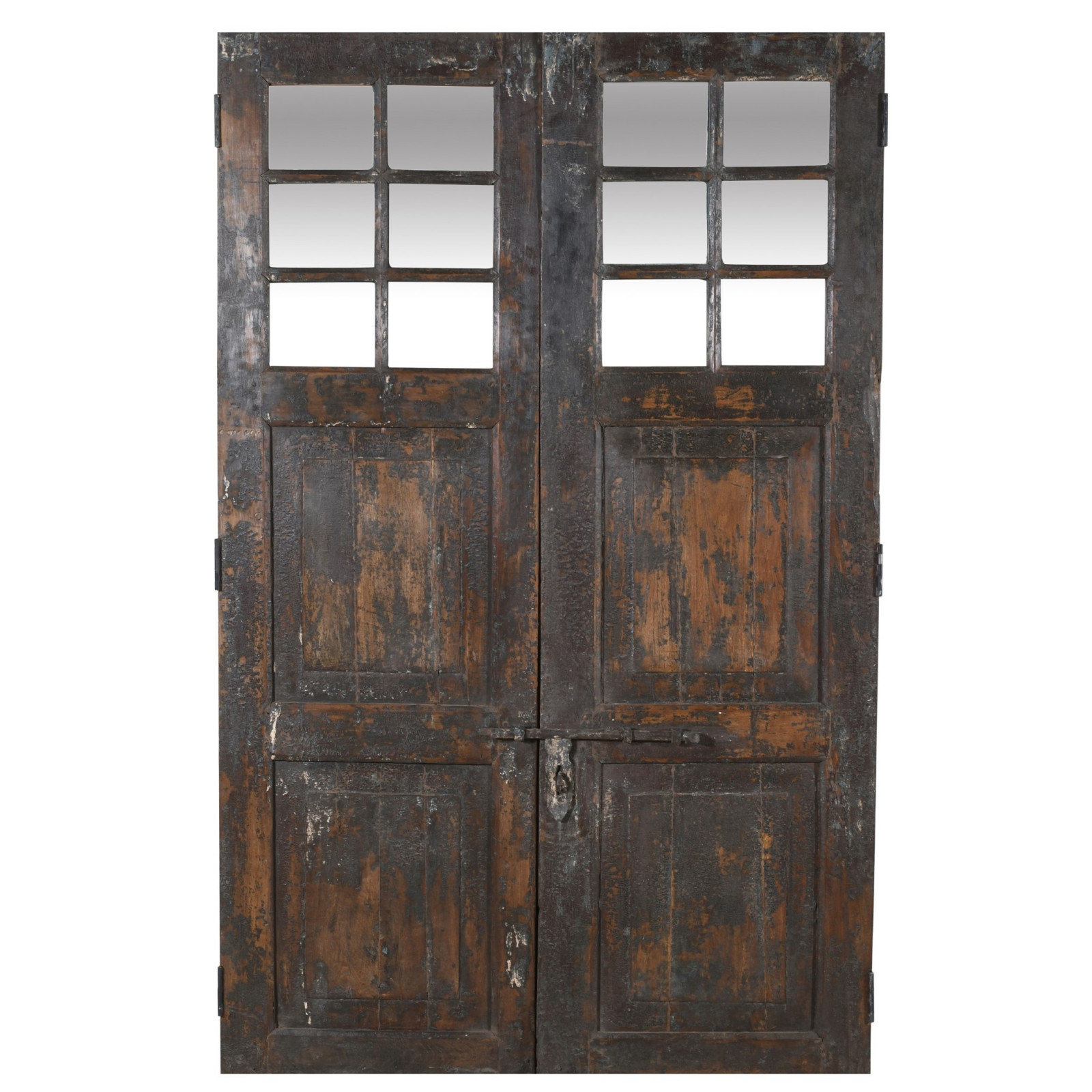 Porta de madeira maciça e ferro para interior ou exterior, antiga e medieval, com vidro