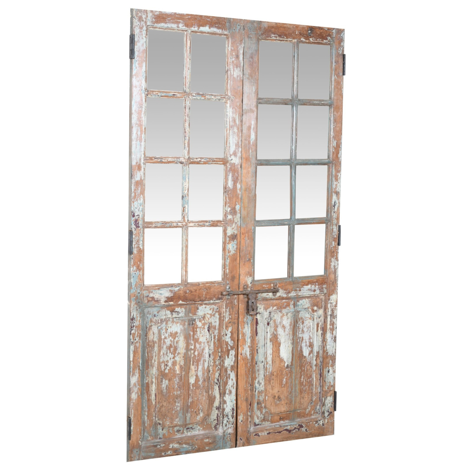 Porta de madeira maciça e ferro para interior ou exterior, antiga e medieval, com vidro