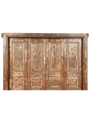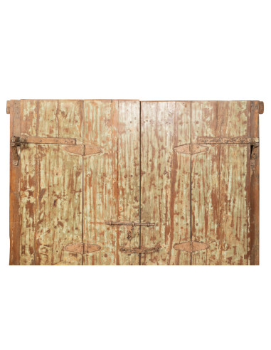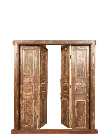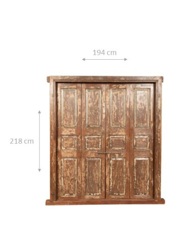 Porta antiga de teca maciça com dimensões de 194 cm de comprimento, 16 cm de profundidade, 218 cm de altura. Esta porta provém da demolição e do restauro de edifícios antigos importantes. Finamente restaurada e tratada para utilização no exterior, cada porta é uma peça de antiguidade verdadeira e única. Todas as medidas referem-se às dimensões totais máximas do artigo.