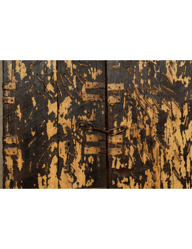 Porta deslizante medieval antiga e antiga em madeira maciça e ferro para uso interno ou externo