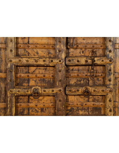 Porta deslizante medieval antiga e antiga em madeira maciça e ferro para uso interno ou externo