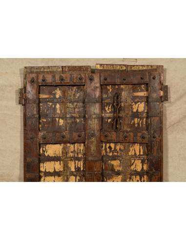 Porta deslizante medieval antiga e antiga em madeira maciça e ferro para uso interno ou externo