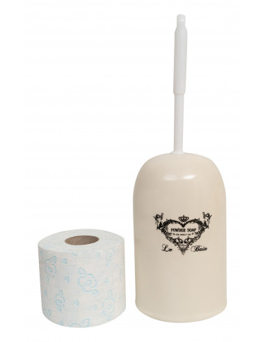 Porta escova sanitária em porcelana branca decorada "Sabonete em Pó"