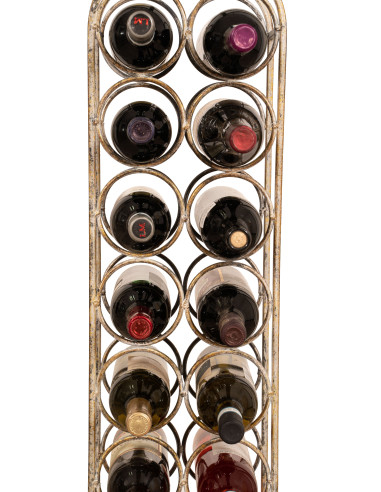 Garrafeira muito estável e robusta, com dimensões de 25 cm de largura, 15 cm de profundidade e 105 cm de altura, fabricada em ferro forjado maciço. Com uma capacidade de 16 garrafas, é um acessório de decoração funcional e prático para qualquer divisão.