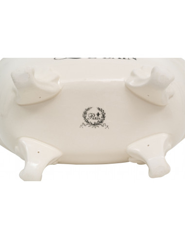 Recipiente multifuncional em porcelana branca com decoração "Le Bain Paris" C25,6xDP12,7xA11,5 cm