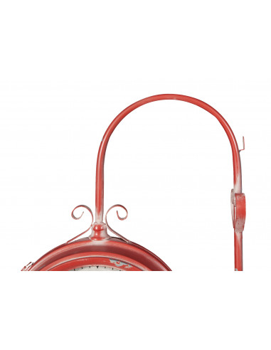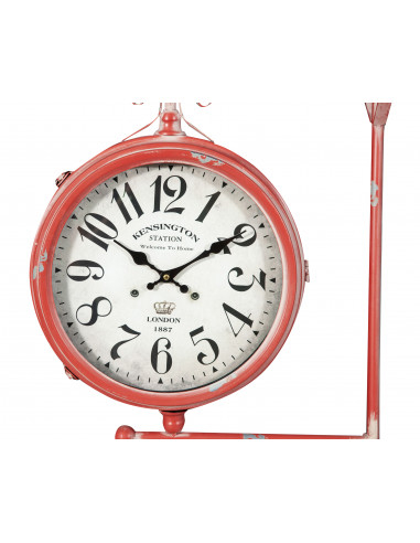 | Relógio de parede dupla face com acabamento em vermelho antigo, comprimento 46 cm, profundidade 18 cm, altura 96 cm com suporte estável em ferro. O design lembra os antigos relógios das estações ferroviárias. Os dois mostradores, facilmente acessíveis graças a uma dobradiça, são independentes dando a possibilidade de marcar dois tempos diferentes. Acessório de decoração vintage original para qualquer tipo de ambiente. Ideal também como despertador de parede para ambientes internos e externos, por exemplo varandas, galpões, gazebos etc... |