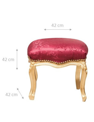 Luís XVI Francês estilo banco de apoio para os pés, em madeira maciça de faia, esculpida e terminada à mão com folha de ouro patina tamanho 42 cm, profundidade 42 cm, altura 42 cm. Banco artificialmente acolchoado.