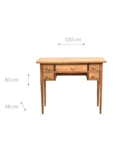 Mesa de escrita feita inteiramente de madeira maciça. Completar qualquer quarto com um toque de elegância rústica, graças à praticidade, originalidade e solidez e experiência de Feito à mão na Itália. Tem uma gaveta central e quatro gavetas laterais todas feitas com rabo de engolir recessos e botões de madeira. Medidas: comprimento 100 cm de profundidade 48 cm de altura 80 cm.