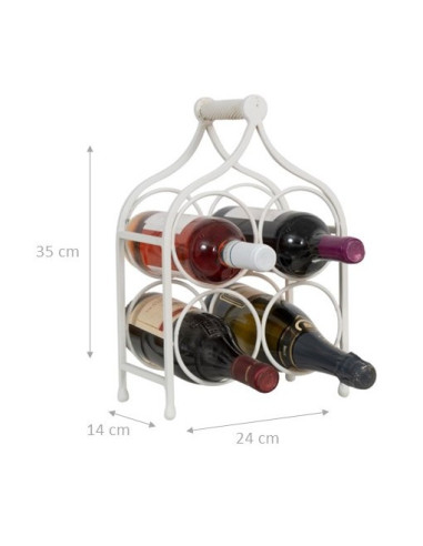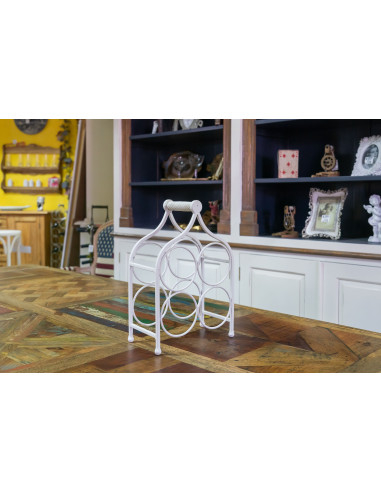 Suporte para garrafas em ferro forjado com acabamento em branco antigo